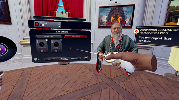 - Effectuez des face à face avec des dirigeants visionnaires. Des dirigeants mondiaux emblématiques entourent la Table de guerre, réagissant aux alliances forgées ou aux déclarations de guerre. Négociez les intérêts de votre empire en tête-à-tête avec d’autres dirigeants dans la nouvelle Salle de la diplomatie.