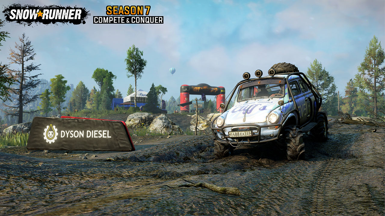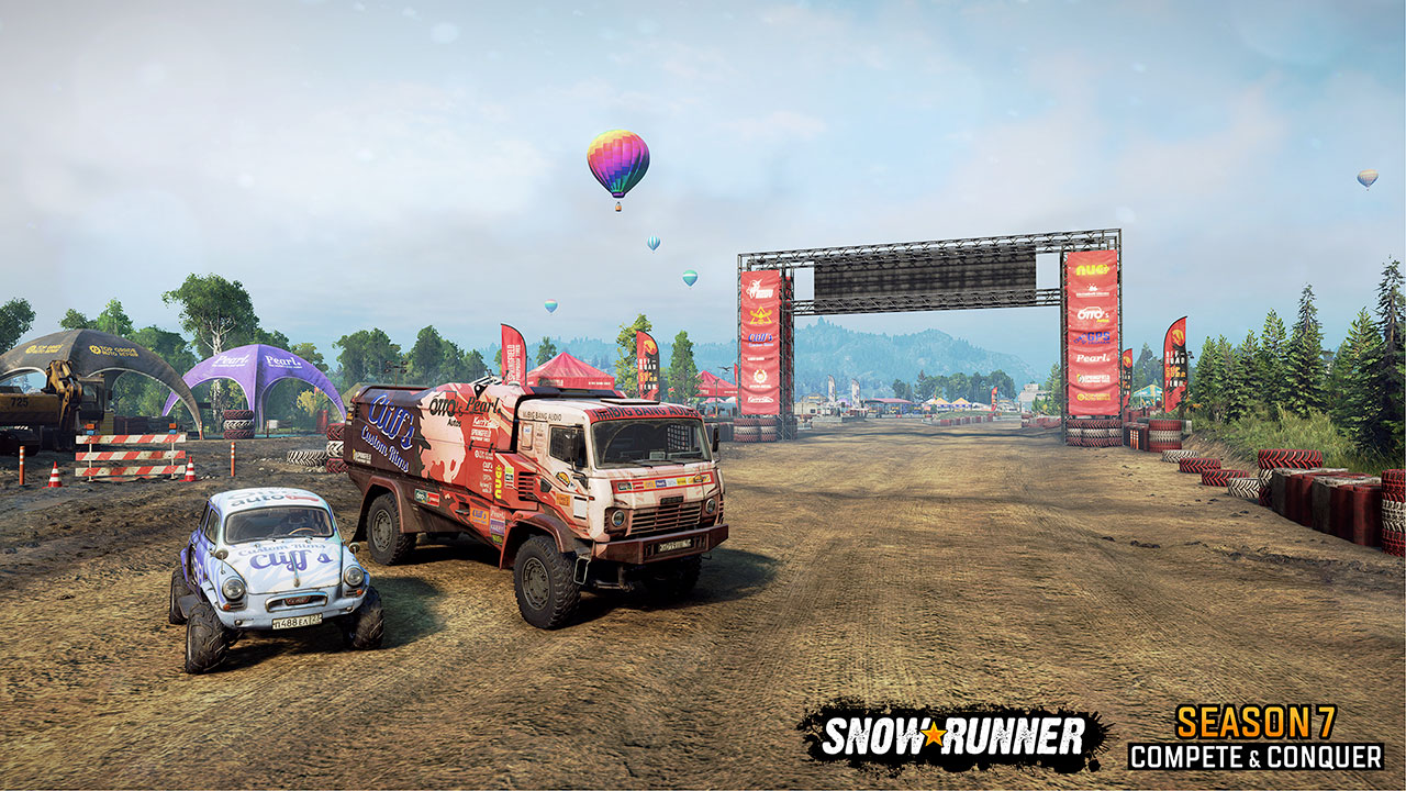 La Saison 7 : Compete & Conquer vous emmène à Burning Mill dans le Tennessee, où vous découvrirez des activités inédites, comme les toutes premières courses de la franchise. Tentez d’être aussi rapide que possible dans des épreuves de contre-la-montre ou affrontez vos amis sur la piste ! La compétition s’invite dans SnowRunner, avec ses tentes et ses montgolfières colorées pour poser le décor.