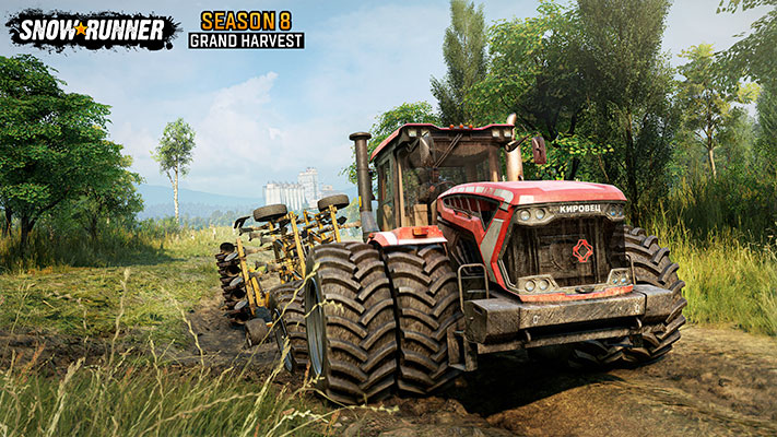 Cette saison 8, qui introduit pour la première fois l’agriculture dans SnowRunner, propose de nombreuses nouvelles activités : réhabiliter la ville et son aérodrome, travailler la terre et réparer ses équipements dédiés, et maintenir une infrastructure énergétique écologique dans des paysages composés de gares, de stations-services, de chantiers de construction, de villages et de terres agricoles.