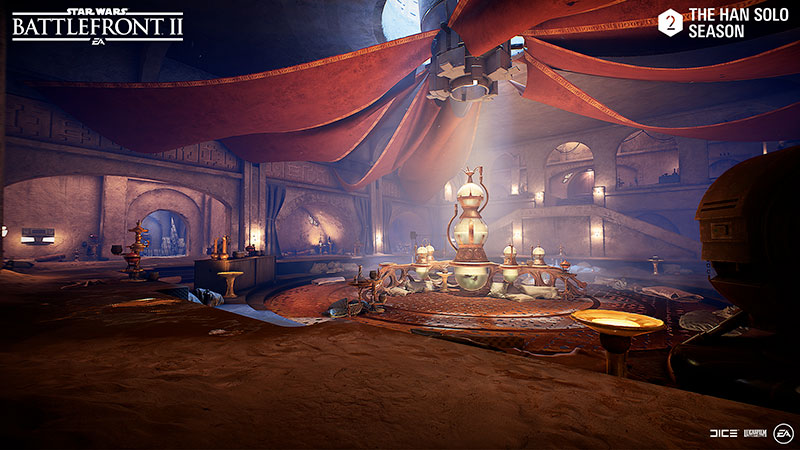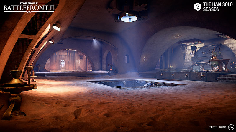Revisitez le palais de Jabba : Disponible en mode Escarmouche, Confrontation de héros ou Affrontement héroïque, les joueurs pourront régler leurs différends dans les couloirs tortueux de l’antre de Jabba.
