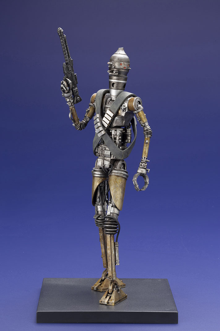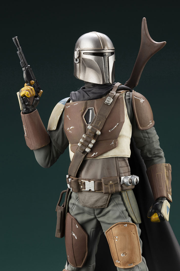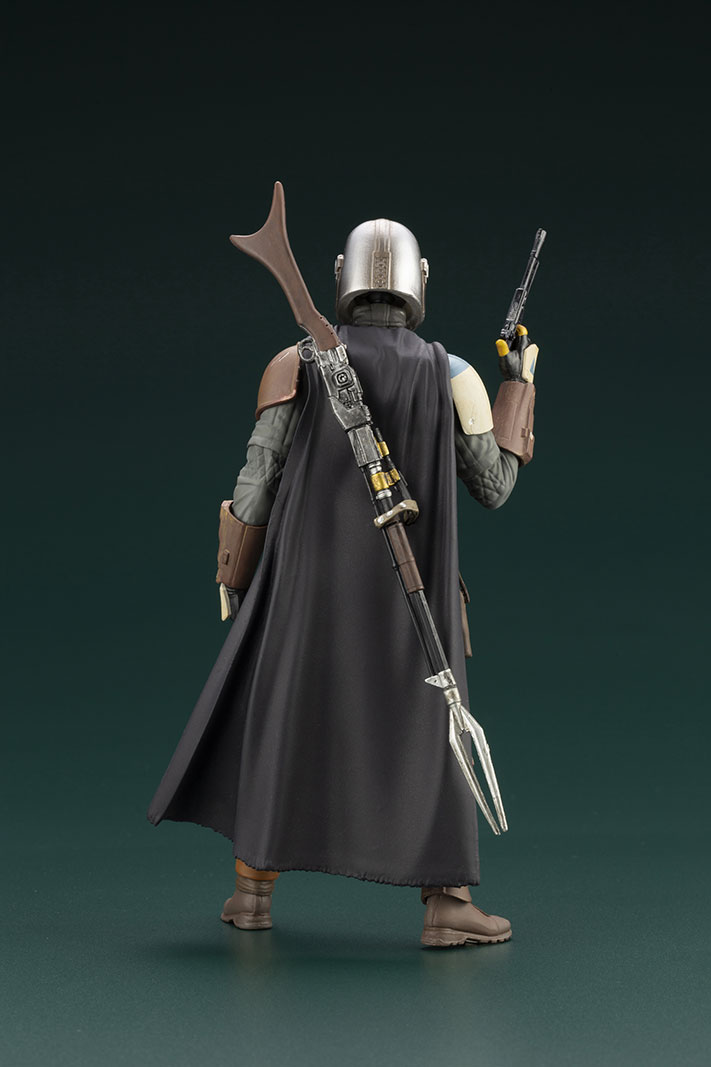La figurine de taille enfant mesure 42 cm de haut et repose sur une base noir qui permet à cet adorable extraterrestre de voler toute l’attention – ainsi que les pièces du vaisseau mandalorien. Inspirée par son apparence unique à l’écran, cette statue mixte présente un manteau de tissu beige emmaillotant l’Enfant qui regarde avec de charmants yeux larges, cachant dans sa main droite le pommeau de vitesse argenté du Razor Crest.