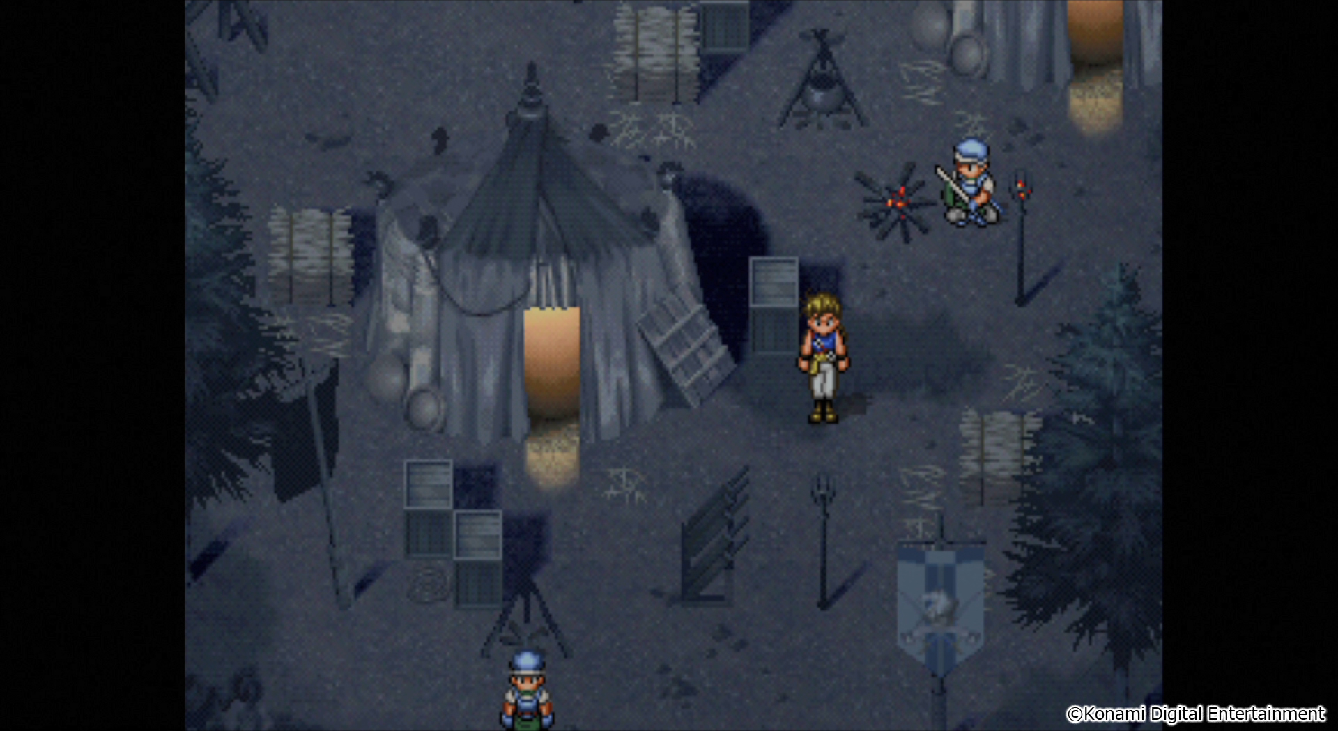 Suikoden II – Jowy au campement de la brigade. Titre original à gauche, HD Remaster à droite