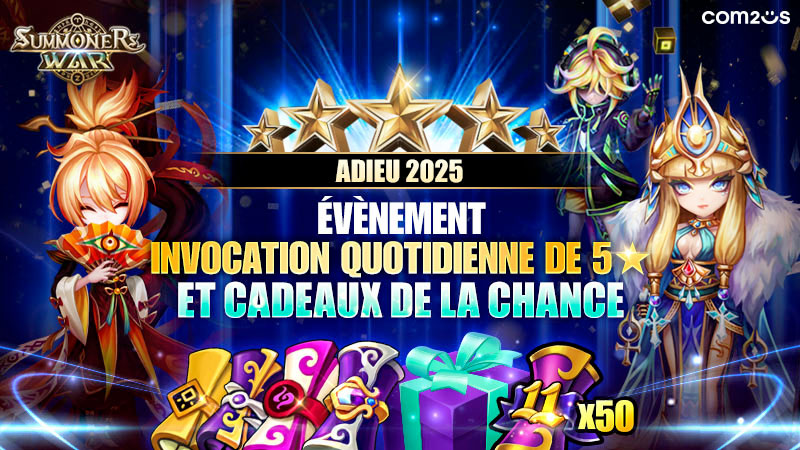 Com2uS organise, jusqu’au 4 janvier prochain, trois événements spéciaux sur le thème « Adieu 2025 ! » pour son RPG de collection légendaire, Summoners War: Sky Arena.