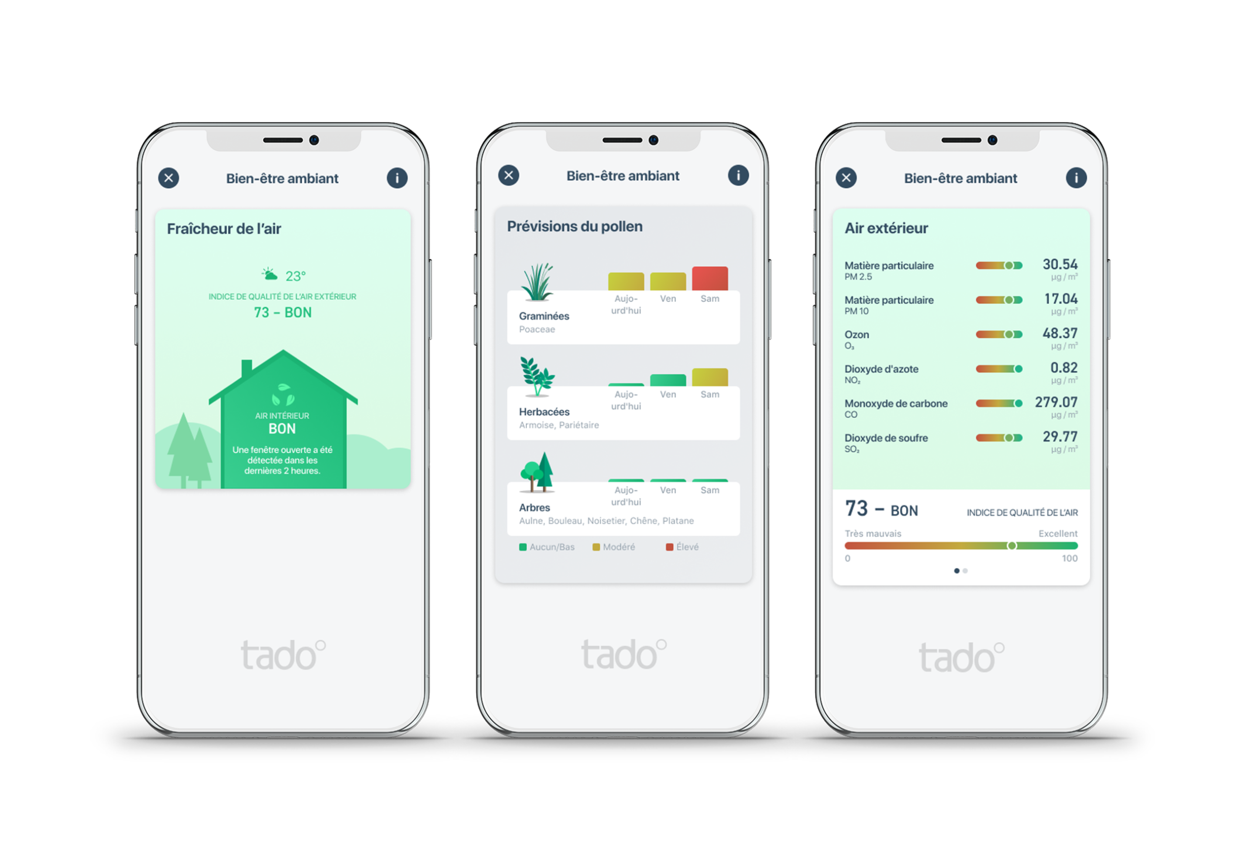 Les utilisateurs de tado° pourront désormais savoir quels types de polluants et pollens sont présents dans l’air qu’ils respirent et obtenir des conseils pratiques pour savoir quand aérer la maison ou au contraire garder leurs fenêtres fermées.