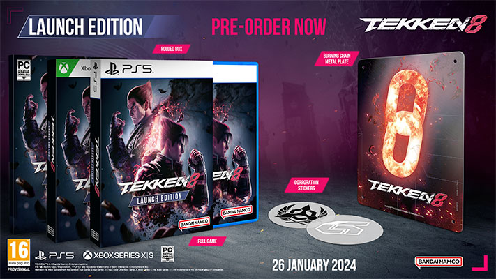 Bandai Namco Europe a annoncé que Tekken 8 sortira le 26 janvier 2024 sur PlayStation 5, Xbox Series X|S et PC via Steam.