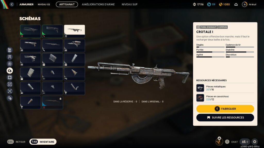Le jeu propose un système de crafting qui est sans doute le point centrale du gameplay, les loots que vous allez extraire vont vous permettre de remplir des quêtes mais aussi de crafter votre équipements et l’amélioré. Cependant vous allez vite comprendre que vous allez devoir choisir ce que vous voulez sortir de la zone car votre inventaire n’est pas forcément énorme et que le poids que vous portez à aussi son importance sur votre gameplay. Si vous êtes trop lourd vous pouvez dire adieu au fait de sprinter, glisser et faire une roulade pour vous sortir d’une situation dangereuse. Mais sortir de la zone trop vite veux aussi dire prendre moins d’équipement ou de ressources et vous allez vite apprendre que crafter votre équipement va vite couté très cher en ressource pour certains objets et encore plus si vous souhaitez les amélioré car oui vous pourrez améliorer votre équipement pour gagner en puissance avant d’aller affronter les autres Raider et robet de ARC. Améliorer une armes ou autres vous donnera un leger avantage sur certains situations, cependant si vous mourrez vous ferez le bonheurs du raider qui vous aura mis KO puisqu’il pourra largement récupérer votre matériel pour le revendre ou le garder. Autant dire que crafter un fusil Ferro 1, le monter au niveau 4 et lui crafter les différents accessoire et le perdre en 10 minute peux parfois vous donner envie de vous mettre à la boxe contre votre pc (et je sais de quoi je parle.. mais c’est une autre histoire..).