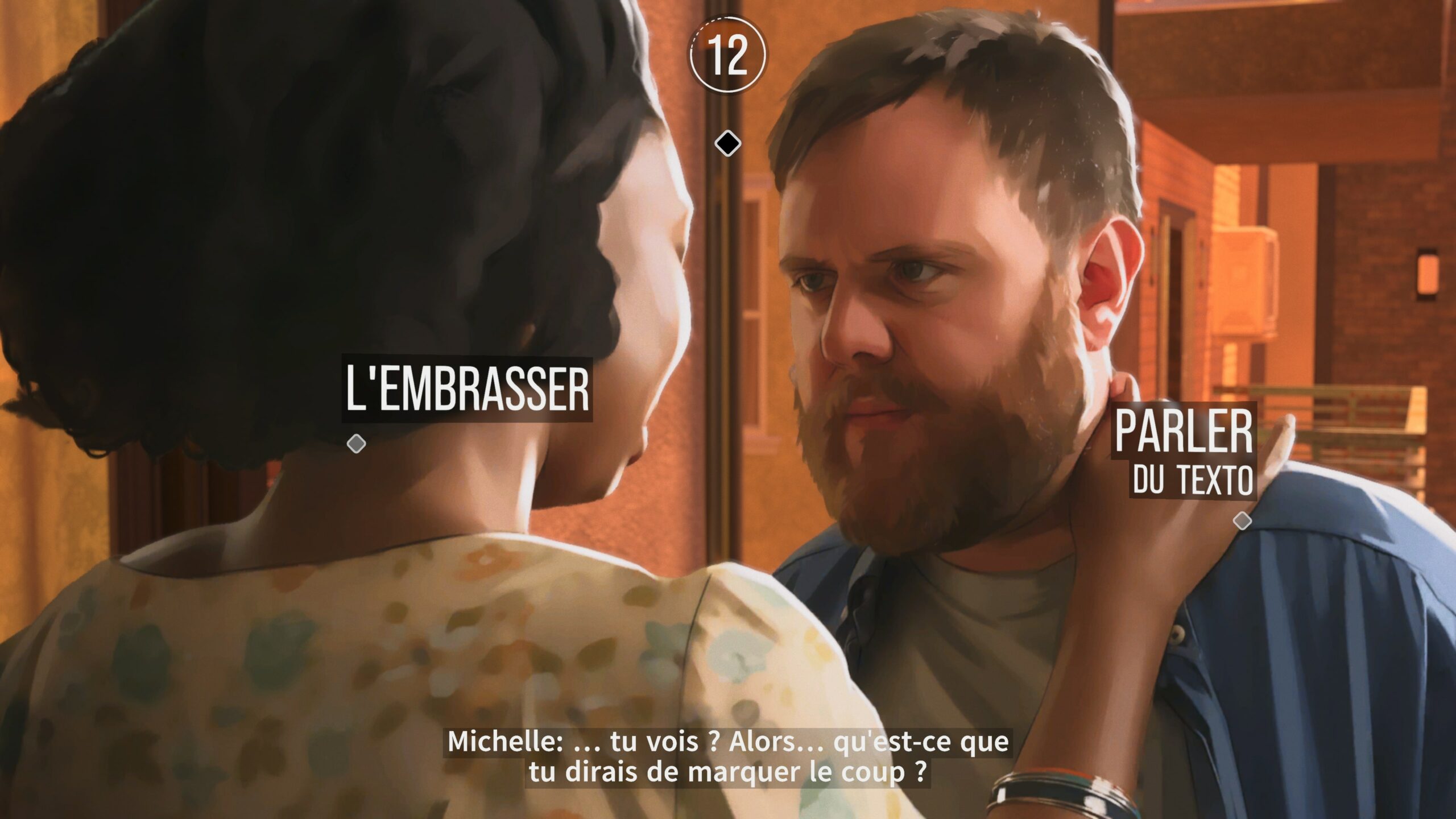 Concernant le gameplay, les choix cruciaux (qui vont avoir un réel impact sur le cours de l’histoire) sont toujours signifiés dans le jeu. Il vous faudra alors bien réfléchir à la suite que vous voulez donner à votre histoire. Quand les choix n’ont qu’un impact minime sur la suite, vous n’aurez qu’un temps court pour sélectionner votre action ou une réponse à une question. De par cette ligne conductrice, ainsi que les indices donnés, As Dusk Falls s’adapte parfaitement pour des joueurs novices. Et pour les joueurs aguerris, cette facilité est largement compensée par le scénario du jeu, dans lequel on se laisse facilement transporter.