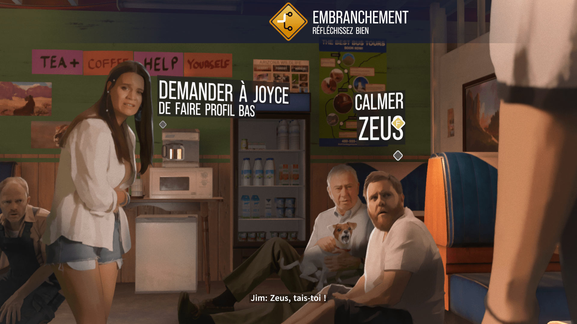 Chose appréciable, à la fin de chaque chapitre, une timeline de tous nos choix est dessinée (similaire à Detroit : Become Human). On peut ainsi voir quelles actions ont déclenché telle ou telle conséquence dans l’histoire. Et l’on peut aussi comparer nos choix avec ceux des autres joueurs, grâce au pourcentage sur chaque action. Vous pourrez donc voir si votre choix était « original » ou s’il était fait par la plupart des joueurs.