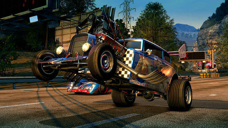 Côté gameplay, la jouabilité reste inchangée. C’est simple, rapide à prendre en main et terriblement jouissif quand on arpente les rues de Paradise City et de Big Surf Island. Big Surf Island justement qui est inclue dans cette version remastered. En bonne compilation « souvenir », Burnout Paradise Remastered est fournie avec toutes les extensions, véhicules et DLC sorti jusqu’à présent. On peut donc accéder directement à Big Surf Island et conduire les véhicules additionnels comme les motos, les Toy-Cars, véhicules de police, mais aussi les voitures de légende, ces véhicules qui ressemblent à des caisses de cinéma comme la DeLorean de Retour vers le Futur, Ecto-1 de Ghostbusters, K-2000 vers mustang, ou encore le Général Lee l’emblématique Dodge Charger de la série Shérif fais-moi peur.