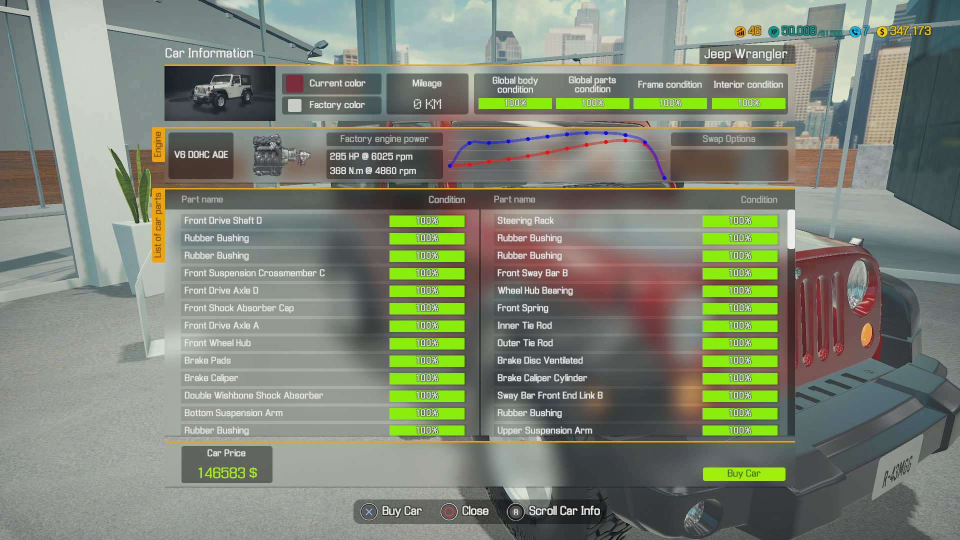 Certains véhicules seront à trouver directement en casse ou à remporter via les ventes aux enchères. Vous disposez de plus d’une dizaine d’outils et plus d’un millier de pièce pour tenter de redonner vie aux voitures. Le détail des pièces est assez bluffant tant il est fidèle à la réalité. On en apprend plus en quelques minutes de jeu qu’en soulevant le capot de sa propre voiture.