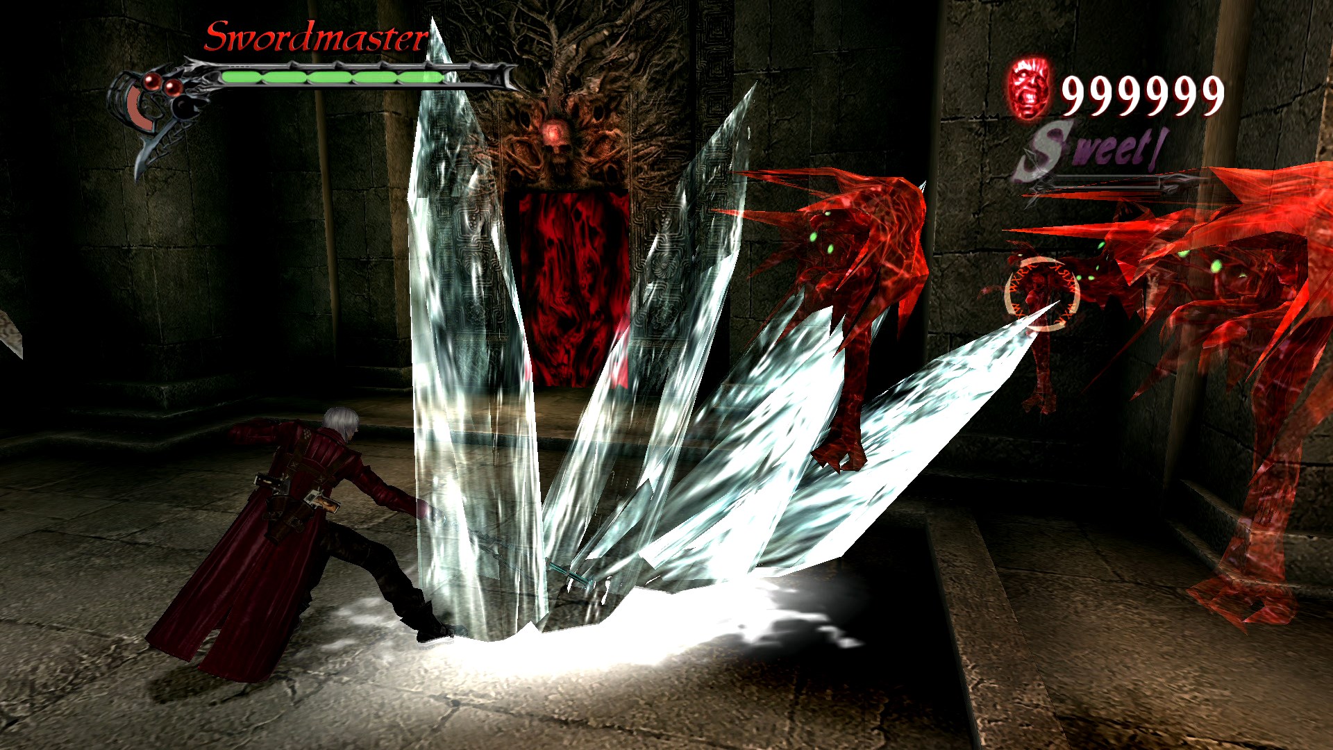 Comptez une bonne quinzaine d’heures pour finir l’histoire principale et beaucoup beaucoup plus si vous voulez tenter le rang S sur chacun des stages et venir à bout du Palais Sanglant, solo ou accompagné d’un ami qui incarnera Vergil. Car oui, Devil May Cry 3: Special Edition propose un mode à jour en coopération avec chacun un JoyCon en main (même s’il est difficile de jouer avec un si petit controller). Dans le Palais Sanglant, vous devez survivre à des hordes d’ennemis dans un environnement clos. Plus vous avancez, plus ça se complique.