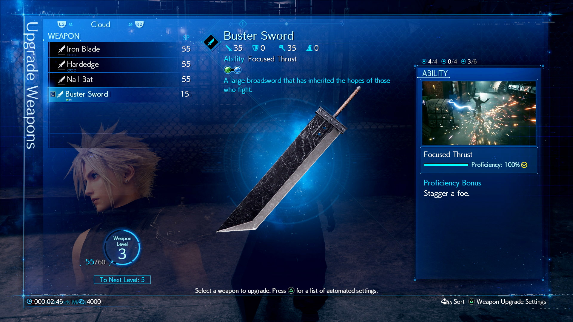 La gestion des armes, accessoires et des matérias évoluent aussi. Ces dernières sont beaucoup plus présentes que dans l’opus original. A l’époque, trouver une matéria était un événement car elles étaient très rares. Dans le remake, il y en a partout ! On peut même les acheter dans des boutiques et même des distributeurs. Seules certaines matéria puissante sont bien planquées, mais c’est très rare. Les armes évoluent en fonction de vos points d’armes (PA) qui débloquent des capacités. Celles-ci sont représentées sur une sorte de « galaxie » qui fait un peu penser au sphérié de FFVIII. Vous pourrez donc avec de nombreuses option supplémentaires allant de +10 en attaques à un nouvel emplacement de matéria sur votre arme.