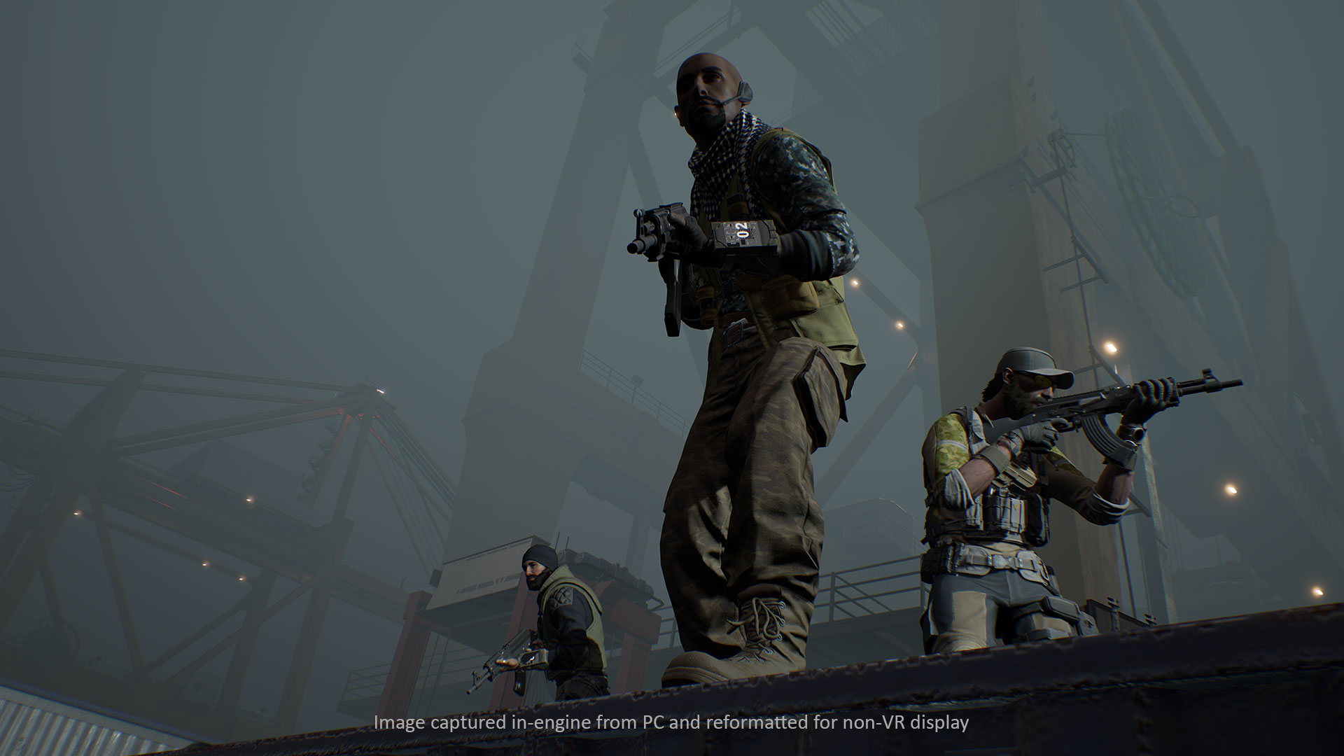 Le titre est donc axé uniquement sur le jeu en ligne, ou offline contre des bots si on prend compte du mode entrainement. Mais le plus gros du jeu est bien évidemment le 4 Vs 4. A la manière d’un FPS compétitif on alterne entre offensif et défensif, le but étant de désactiver un firewall pour voler des données confidentielles dans un temps imparti ou de défendre le terminal. Nous avons le choix entre 8 mercenaires aux compétences particulières, à savoir que 4 nouveaux personnages sont déblocables au fur et à mesure que l’on prend de l’XP. C’est aussi en prenant du grade que l’on peut débloquer la personnalisation matérielle et le choix de nouveaux équipements et armes. Neuf maps sont proposées avec chacune son environnement. Ça peut paraître peu mais rappelons que le temps de jeu en VR est totalement différent que celui devant un écran.