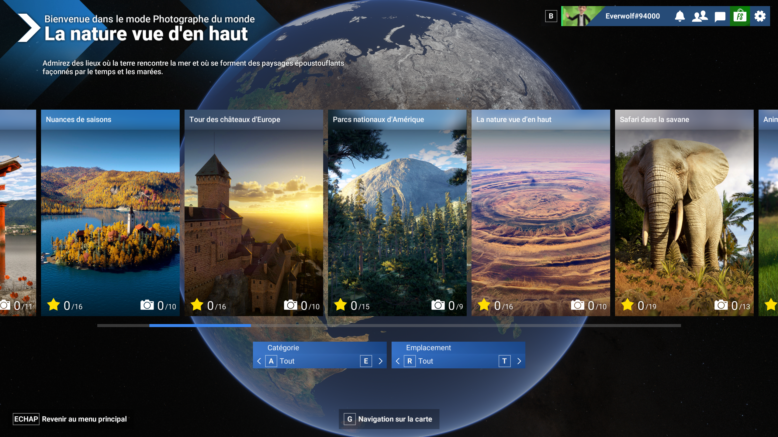 Le mode « Photographe » lui permet des réaliser des défis en prenant des photos en étant à pied ou en vol. Vous devrez par exemple photographier des élans au canada ou ailleurs et ce en vous promenant dans les zones où ils se trouvent. Pour cela, vous devrez donc prendre votre avion ou hélicoptère et vous rendre dans la zone, vous poser et vous balader jusqu’à tomber sur l’animal en question. Vous pourrez aussi trouver des défis pour les monuments et bien d’autres. Ce mode est sympathique et apporte son petit coté « balade » ce qui permet de faire une pause entre deux vols pour des clients ou un Paris -> Las Vegas.