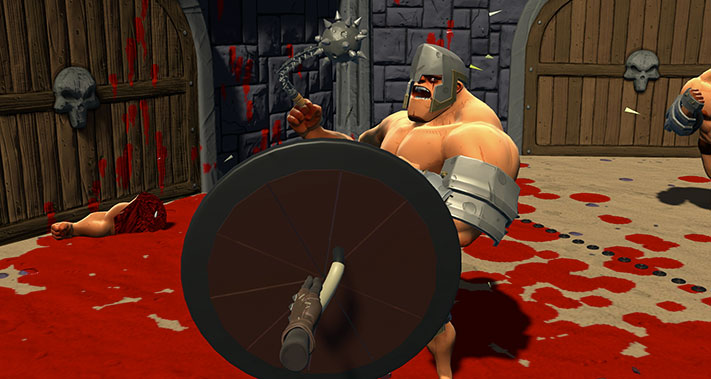 Nous incarnons un gladiateur lancé dans l’arène. Objectif… survivre. Voici en gros l’histoire du jeu. Gorn est a proprement dit une expérience VR plutôt qu’une aventure scénarisée. Le jeu est à l’instar de certains blockbusters au cinéma, pas d’histoire mais de la baston ! Vous devrez donc survivre à de nombreuses vagues d’ennemis en utilisant vos poings, armes et boucliers, mis à disposition ou directement volé sur les cadavres de vos adversaires. Les vagues passées vous serez lancé dans l’arène en mode mêlée générale où chacun des participants devra se défendre. Il ne pourra en rester qu’un (avouez vous avez la musique dans la tête lol) qui sera confronté au boss de fin de niveau.