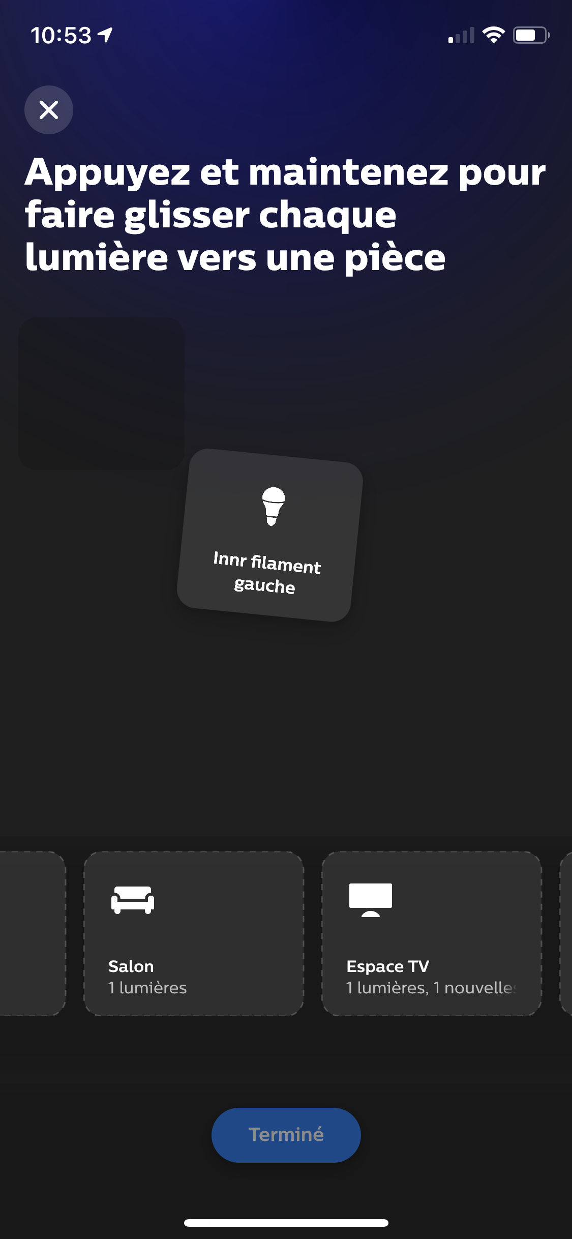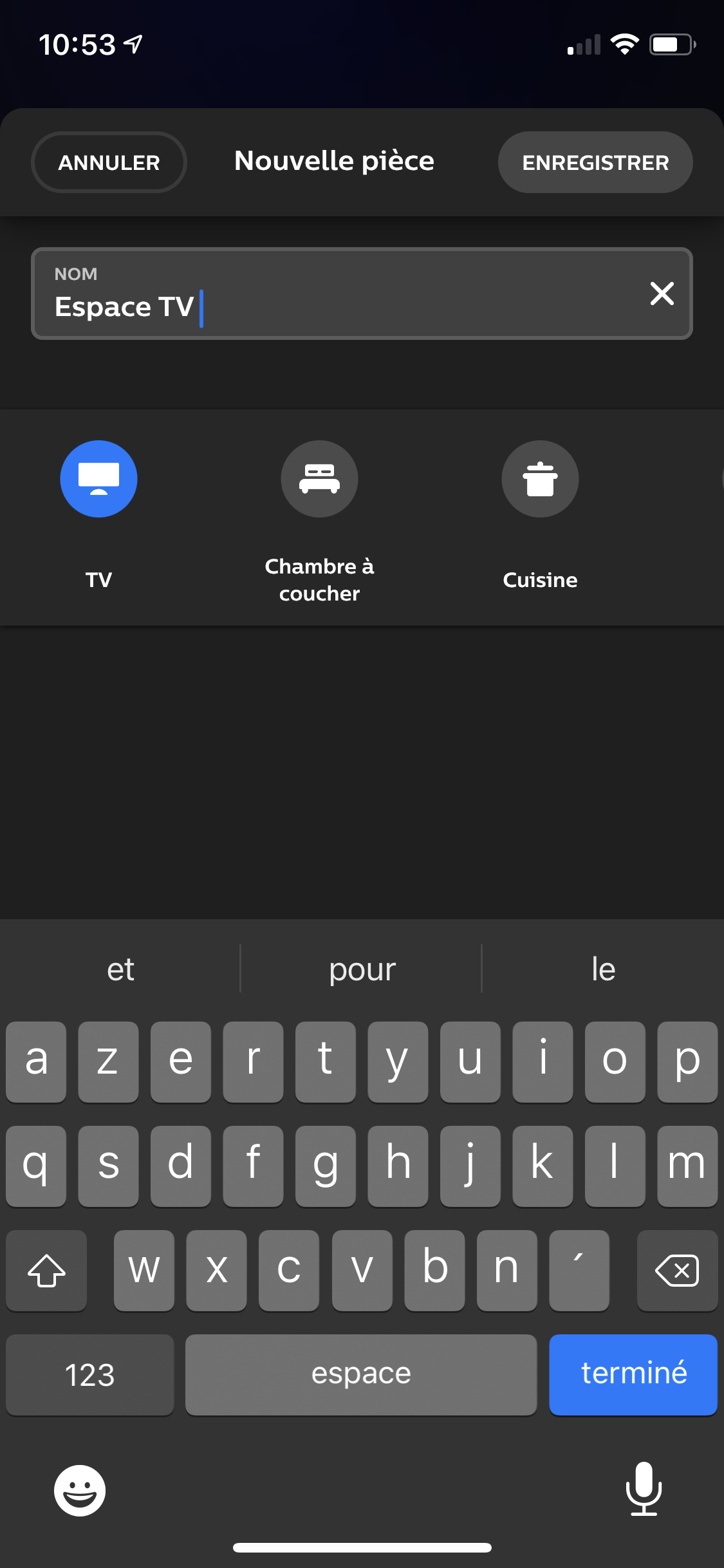 Pour notre test, nous avons profité du pont Philips Hue déjà présent depuis bientôt 2 ans pour ajouter deux ampoules à notre écosystème et d’en faire une pièce que l’on nommera « Espace TV ».