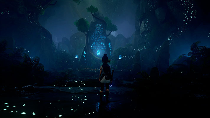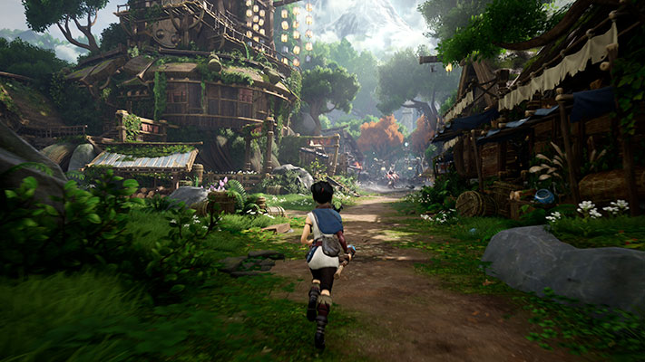 Le jeu nous propose donc de vivre l’aventure de Kena dans sa quête de guider les esprits et d’atteindre un sanctuaire sacré. Son périple l’amènera à purifier les villages, plaines et forêts corrompus par le mal. Accompagnée de petites créatures nommées Rot (oui en français ça fait bizarre) Kena aidera les esprits à rejoindre la lumière. Le scénario est certes basique mais il fait le boulot. L’univers de Kena est tellement féérique qu’on en oublie la légèreté de l’histoire.