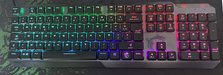 MSI propose donc un clavier au design fin et léger. Le Vigor GK50 est pratique pour le transport tant pas sa finesse que par son poids (435x141x34mm pour 700g). Il est très facile à ranger dans son sac lors d’un déplacement. Un plus si vous être un amateur de LAN.