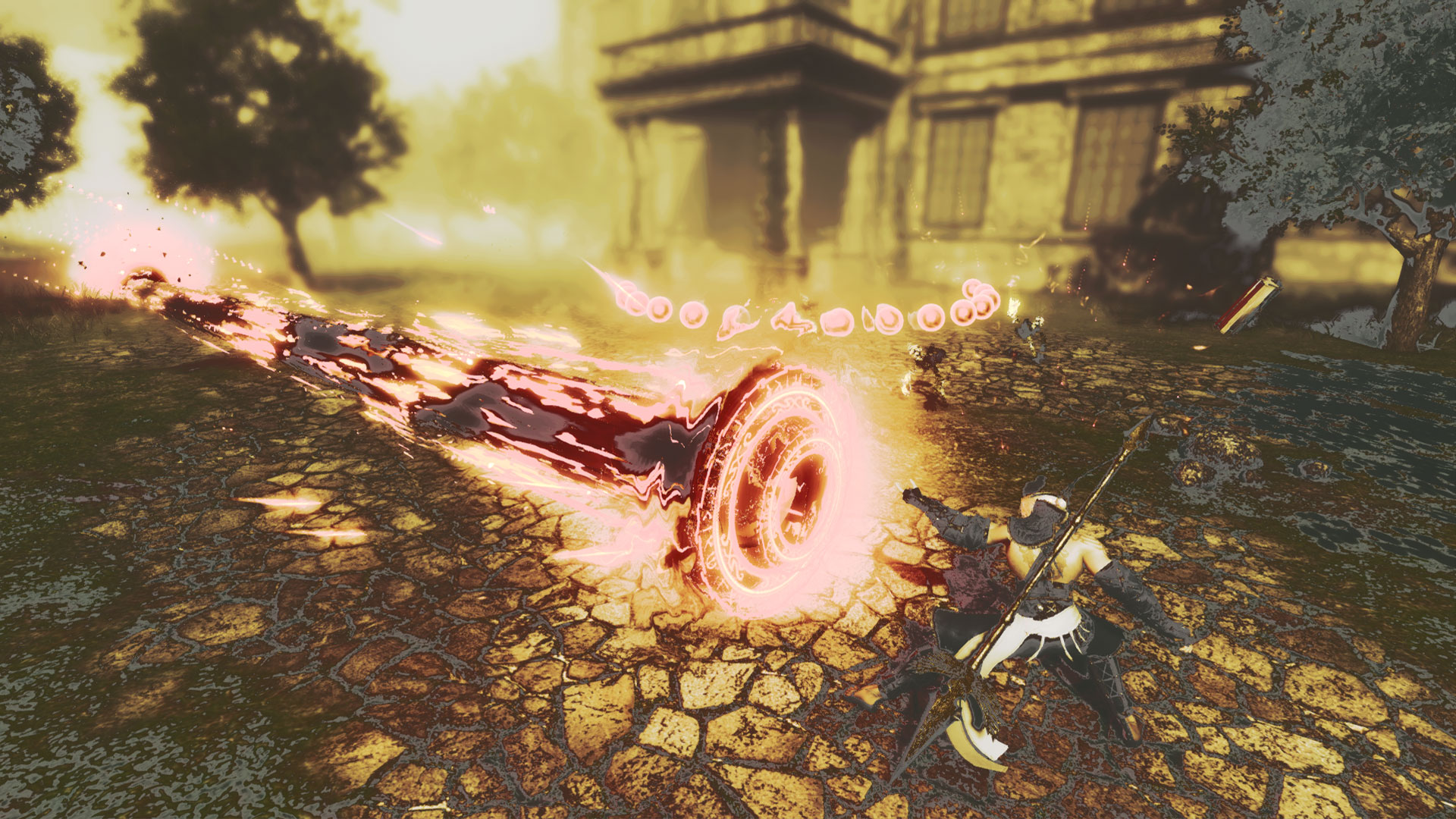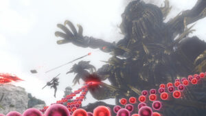 On reste dans un action-rpg où pendant les combats il faudra combattre des vagues d’ennemis comme dans un beat them all, mais le jeu varie les gameplays, il y a aussi des phases qui ressemblent à du shoot them up quand vos ennemis vous envoient des vagues de « missiles » à esquiver (les joueurs de Automata, connaissent bien), et aussi quelques séquences de plateformes, on n’a pas trop de répits dans tous ces moments d’action, heureusement, on peut courir, esquiver, sauter tout en tirant ou en donnant des coups d’épée.