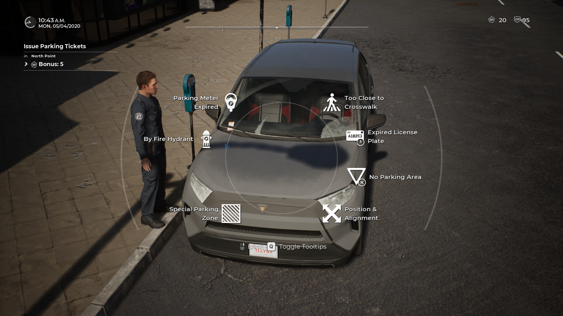 Le mode Simulation, ou pourrait-on dire le mode « histoire », nous fait donc commencer en tant que tout jeune officier. Notre première journée va consister à marcher dans les rues de la ville et du « quartier » pour vérifier les voitures qui sont bien stationnées ou non. A chaque PV mis à un véhicule qui n’a pas son ticket valide vous allez gagner de l’XP et donc vous permettre de passer votre 1er niveau si vous ne faite pas d’erreur au moment de la verbalisation du véhicule. Le jeu offre pas mal de possibilités puisque vous pourrez vérifier les bornes de stationnement devant chaque voitures, vérifier les plaques et si le véhicule est apte à rouler ou non dans les rues de la ville (coucou la Mairie de Paris). Apres votre première journée et si vous gagnez votre premier niveau alors vous pourrez débloquer la suite de votre formation et découvrir un nouvel équipement et de nouvelles fonctionnalités.
