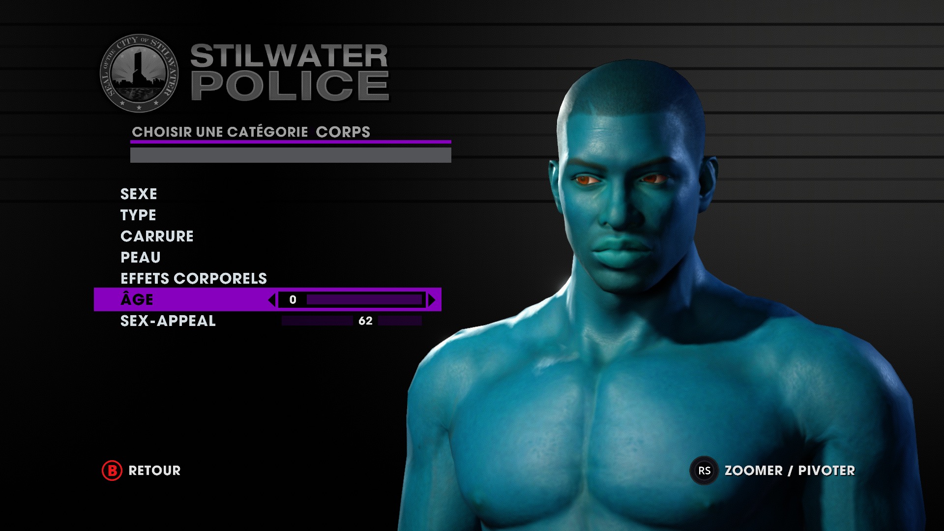 Commençons par l’introduction. Une fois le didactiel terminé, il est possible de personnaliser son personnage (qui portait jusqu’à présent la grosse tête de Johnny Gat et masquait donc son visage). Pour commencer, un choix parmi les Saints avec une silhouette propre à chacun : femme svelte, monstre baraqué, mec musclé… Faites votre choix !