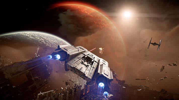 Graphiquement, c’est tout simplement magnifique. Les décors, les effets et surtout l’ambiance visuel et sonore de Star Wars. Vous pourrez choisir entre les modes Performances ou Qualité suivant si vous désirer profiter d’un taux de rafraichissement plus fluide ou des graphismes plus détaillés. Vous avez aussi la possibilité de jouer avec les bandes noires des cinématiques (soit en 21:9). On notera quelques bugs d’affichage mais nous n’en tiendrons pas compte étant donné que nous avons testé le jeu avant sa sortie.