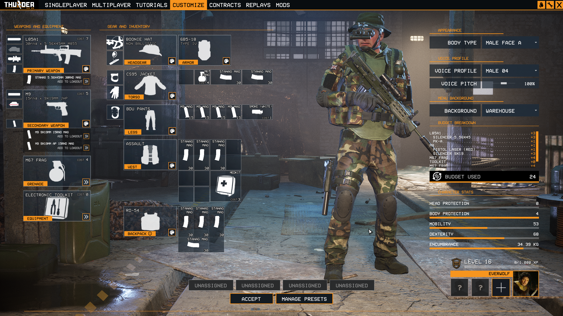 Sorti le 7 Janvier dernier sur steam, Thunder Tier One vous met dans la peau d’un chef d’escouade d’une petite unité anti-terroriste. On va le dire tout de suite, le jeu demande un petit temps d’adaptation avant de bien le prendre en main. Une fois cela fait vous allez découvrir un jeu qui vous demandera de faire attention à vos actions. Vous pourrez avant chaque mission passer par le briefing afin de mieux comprendre votre objectif. Une fois cela fait direction « l’armurerie » où vous pourrez choisir l’équipement de votre personnage et celui de vos collègues IA. La personnalisation a été plutôt bien penser et est assez complète pour le début du jeu, en espérant que d’autres armes et objets arriveront par la suite. Vous pourrez donc choisir votre armes parmi plusieurs types, fusil d’assaut, sniper etc.. et rajouter ou enlever des accessoires que ce soit sur vous ou sur votre arme comme un silencieux ou viseur laser. Vous devrez donc vous préparer tenant compte de quand ce passera votre mission, si elle est de nuit de par exemple n’oubliez pas de prendre vos vision nocturne.