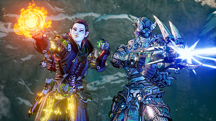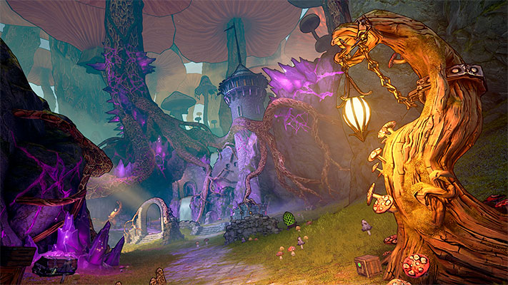 Pour commencer, nous n’évoquerons pas l’histoire du jeu tellement celle-ci a une part importante dans l’aventure et il est quasiment impossible de l’évoquer sans spoiler. Donc nous vous invitons à découvrir in-game Tiny Tina’s Wonderlands. Pour l’ambiance, Gearbox Software a opté pour de l’héroïc-fantasy ultra-coloré. Mais rassurez-vous l’humour décalé de Borderlands est bien présent.