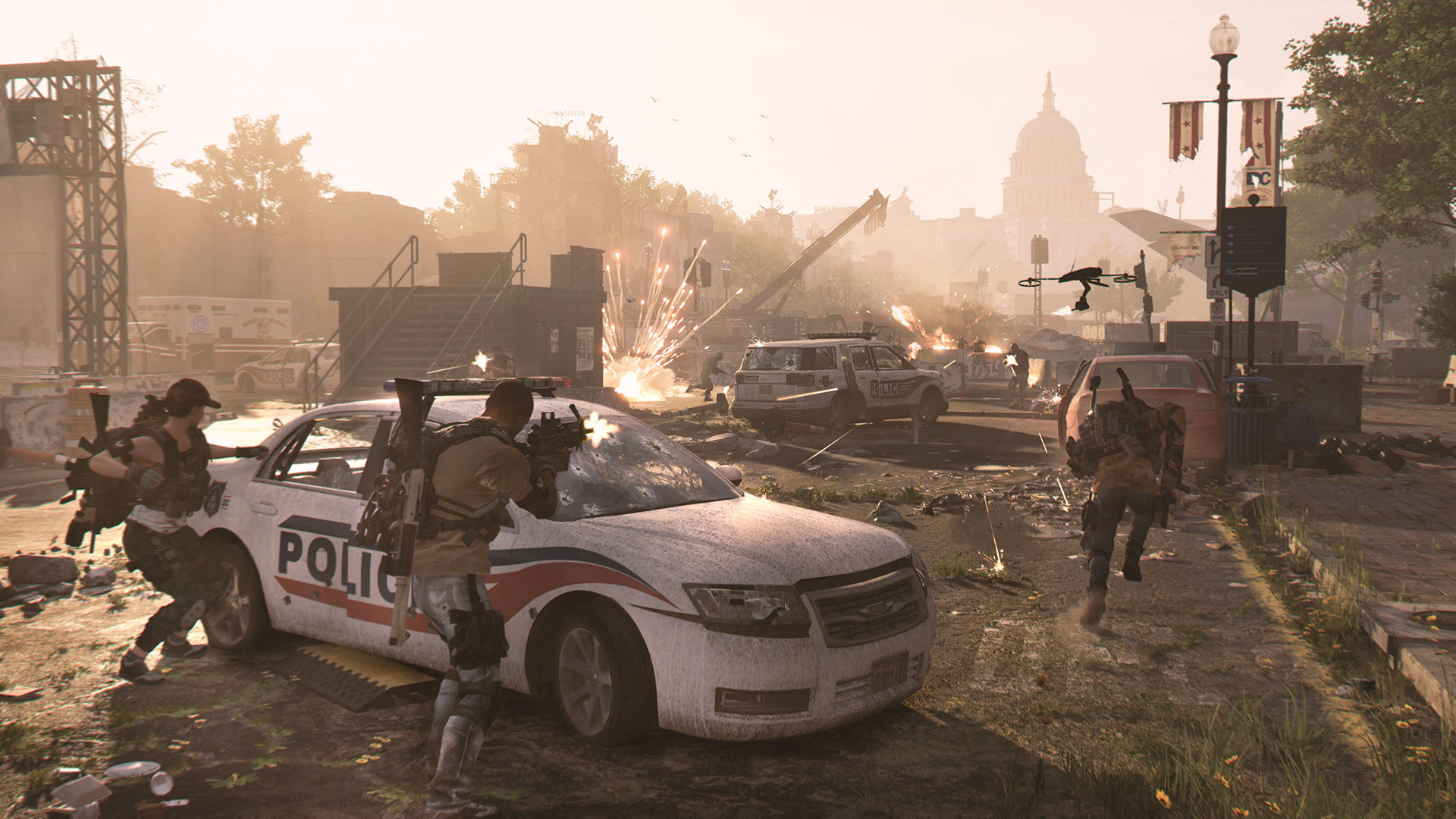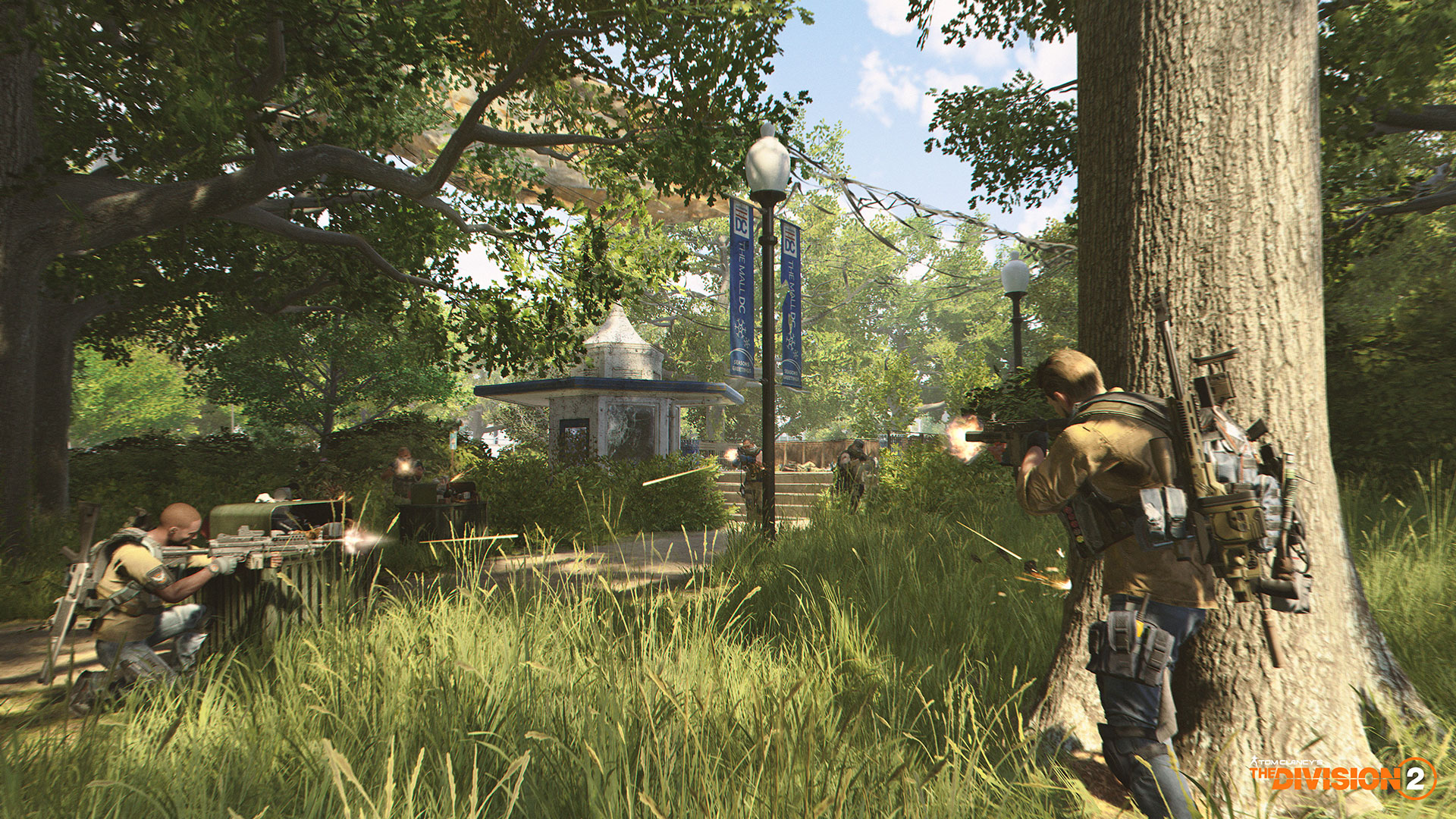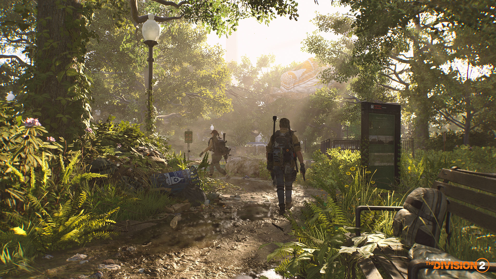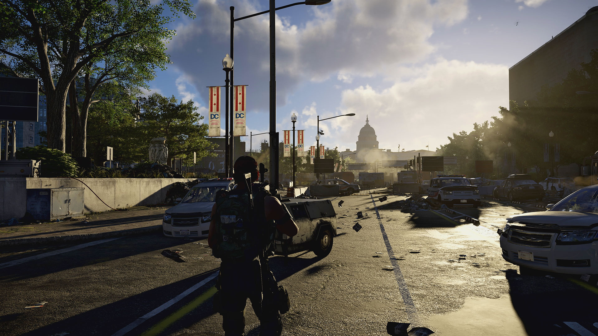 Graphiquement, on est relativement proche du premier opus. La neige a fait place à la verdure et la faune printanière. Ainsi, la nature retrouve son chemin et reprend ses terres, tout comme les animaux que l’ont peut croiser dans les rues de la capitale. Les rues sont amplis de carcasses de voitures, de poubelles et un grand nombre de malles et sacs à dos qui feront le bonheur des looters. De jour comme de nuit, Washington est très bien représentée, avec ses monuments historiques et ses grand parcs. The Division 2 n’est certes pas une révolution graphique mais il reste quand même très beau et agréable visuellement.