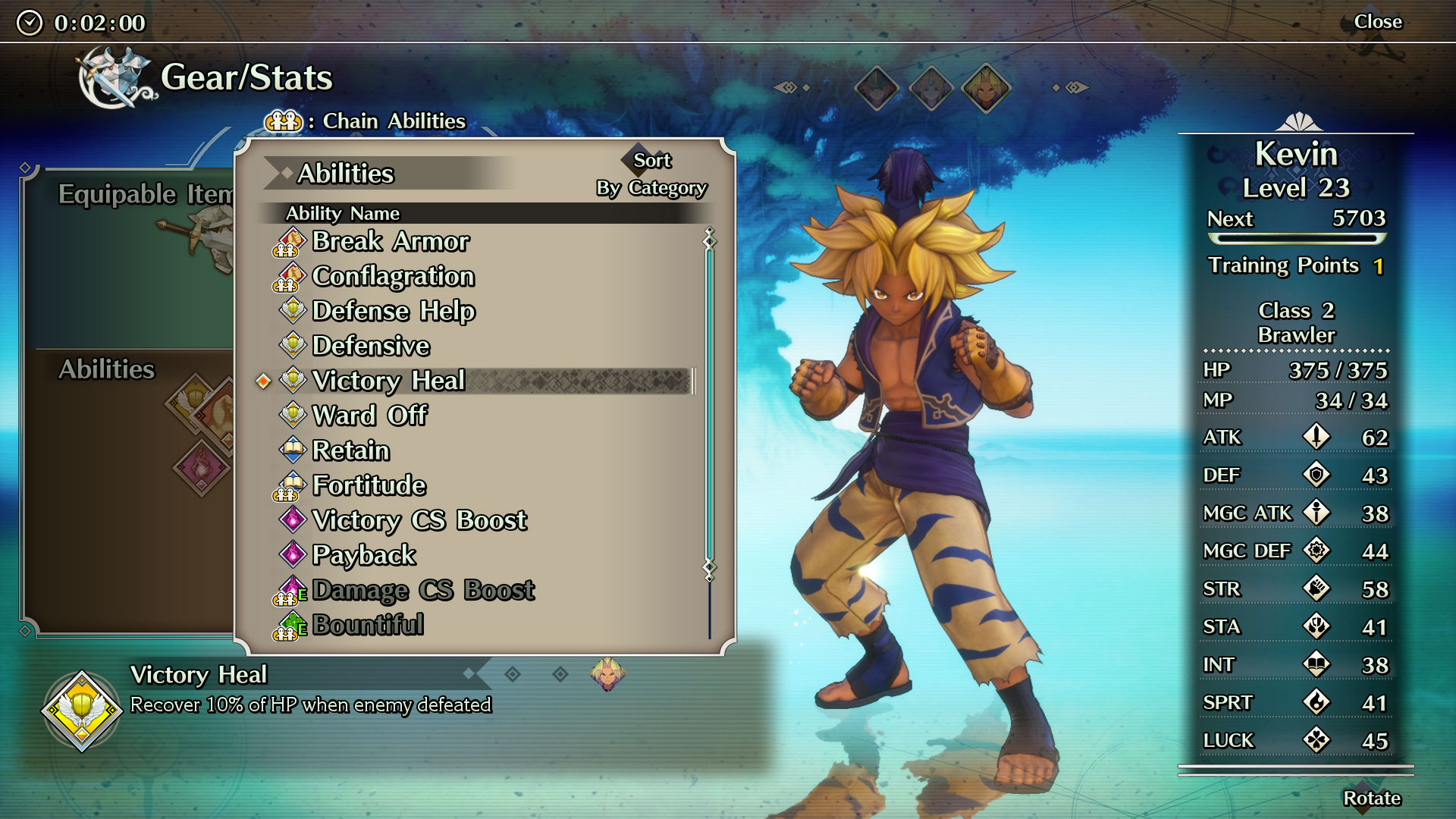 Après chaque combat, on gagne évidemment de l’expérience et à chaque niveau gagné, on acquiert un point de compétence que l’on doit assigner (force, vitesse, etc) et plus tard on pourra aussi changer la classe de son personnage soit du côté lumineux soit ténébreux (par exemple Amazone > Valkyrie).