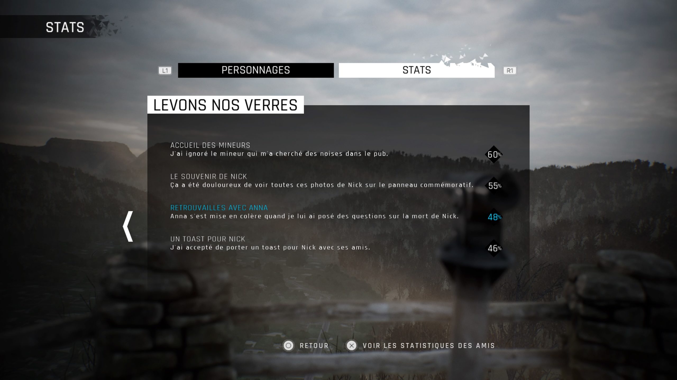 Passons maintenant au cœur de ce jeu : le palais mental ! C’est vraiment ce qui fait le gros intérêt de Twin Mirror. Si vous fouillez suffisamment certains recoins, vous débloquez des mementos, qui, comme le nom l’indique, vous ramène à un souvenir du personnage. Cela permet, entre autre, d’en découvrir un peu plus sur Sam et ses relations, mais aussi de récolter des indices qui vous aideront lors des interactions futures. Et pour les collectionneurs, trouver tous les mementos du jeu débloque évidemment un trophée !