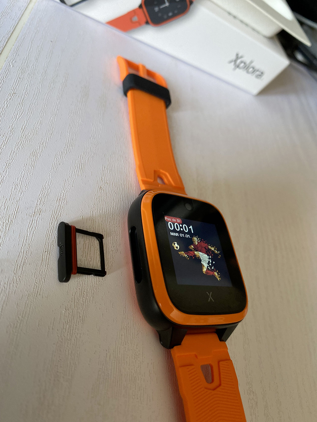 Le coffret comprend donc une montre Xplora XGO3, son câble de recharge USB, un outil pour ouvrir le compartiment de la carte SIM, ainsi qu’un guide l’utilisateur. Une carte SIM est nécessaire pour faire fonctionner la montre qui utilise les réseaux 2G, 3G et 4G.