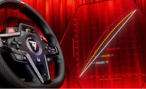 Le T248R est équipé du système T-HD (Hybrid Drive), pour un retour de force puissant et réactif, avec 3,1 Nm de couple et 48 W de puissance constante. Trois niveaux de BOOST sont disponibles pour ajuster instantanément l’intensité du retour de force en fonction de vos préférences et du type de course.