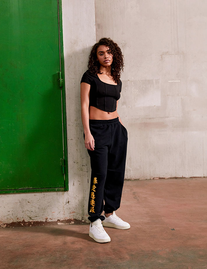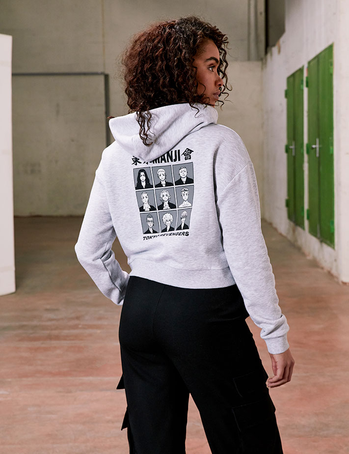 Plongeon immédiat dans l’univers de Tokyo Revengers avec le hoodie gris, pièce forte de la collection. Associé au jogging de la même couleur et son inscription en japonais, qui signifie Tokyo Manji Gang, la métamorphose est complète !