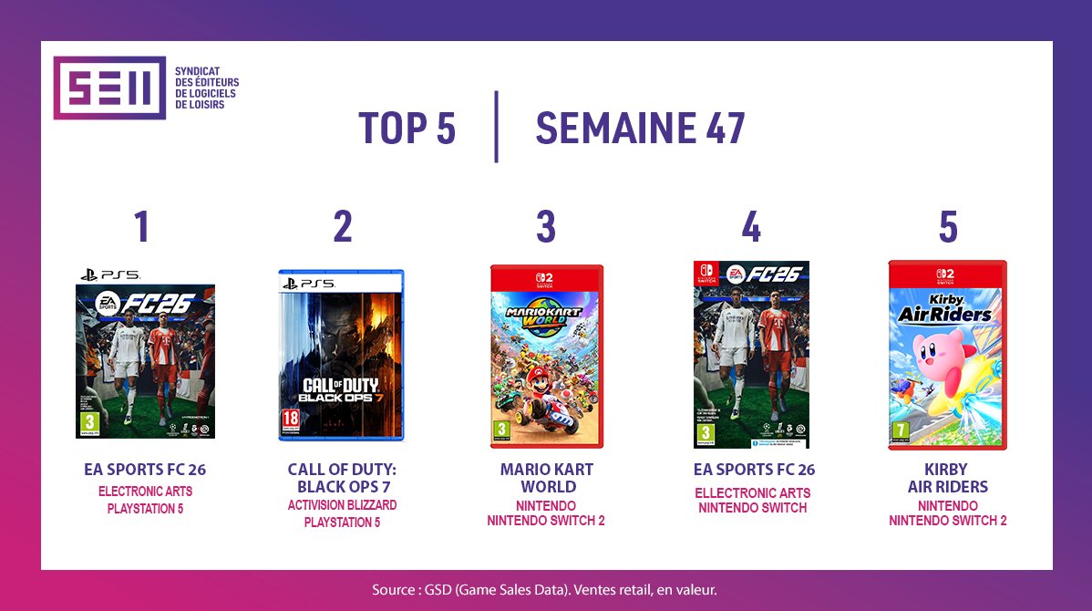 TOP des Ventes de Jeux Vidéo – semaine 47 / 2025