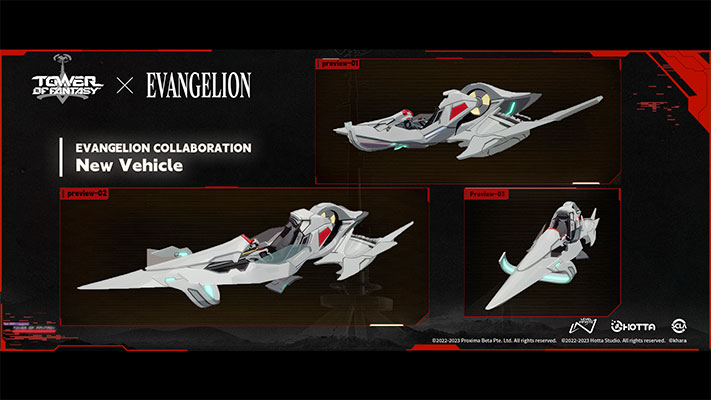 Afin de mieux se préparer à la menace imminente des Anges, Mirroria réactive également le mécha originel de la Tour fantastique, dont les joueurs pourront se servir spécifiquement pour lutter contre cette incroyable intrusion. Les joueurs pourront piloter cet ancien équipement de guerre afin de combattre les Anges aux côtés des unités d’Evangelion. En plus de l’équipement mécha d’origine, Mirroria a effectué une refonte spécialisée sur un lot de véhicules tout-terrain surnommés Âmes-bolides. Les véhicules sont équipés de puissants moteurs antigravité qui leur confèrent une adaptabilité accrue à différents terrains.