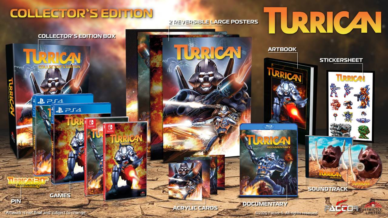 L’édition Collector Turrican (99,99 €) et l’édition Collector Turrican Ultra (199,99 €) englobent les deux Anthologies Turrican et incluent de nombreux extras.