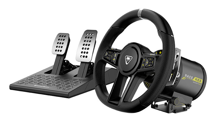 Les palettes de changement de vitesse magnétiques offrent des passages de vitesse précis et fiables, tandis que le Race Management Display™ permet aux pilotes de personnaliser leurs profils à la volée. Les pédales en aluminium réglables et la conception modulaire s’adaptent à toutes les configurations, et l’application VelocityOne Tuner facilite leur personnalisation. Conçu pour offrir réalisme et performances, VelocityOne Race KD3 est un système avancé de retour de force destiné aux pilotes chevronnés. Le VelocityOne Race KD3 est disponible en précommande dès aujourd’hui sur turtlebeach.com et chez les revendeurs participants du monde entier au prix de vente conseillé de 349,99€. Le système de volant et pédales de course Turtle Beach VelocityOne Race KD3 sera commercialisé le mardi 9 septembre 2025.
