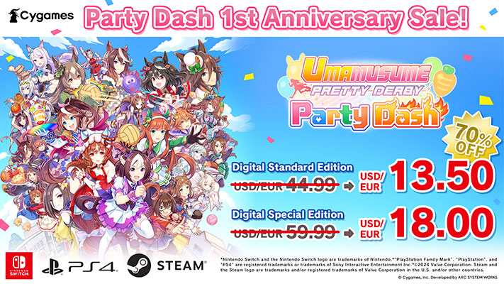 Pour célébrer le premier anniversaire du jeu, les éditions Standard et Special d’Umamusume: Pretty Derby – Party Dash sont désormais en vente avec 70 % de réduction.