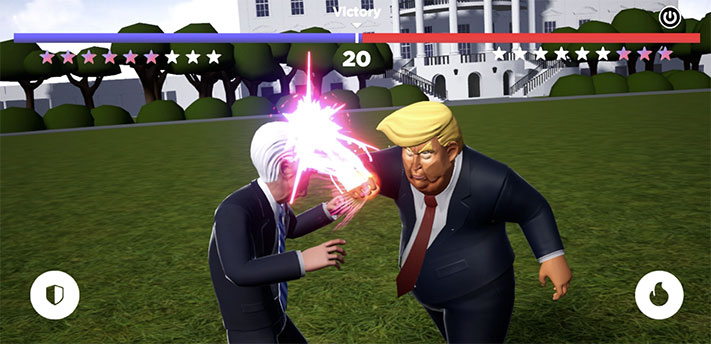 Avec ses dizaines de coups spéciaux (“Tweet Salvo !”, “Collusion Collision”, “Mega MAGA !”, “Working Class Joe”, “Unavoidable Tax !”…) et sa centaine de Punchlines, ce jeu propose de découvrir les programmes et la politique de chacun des concurrents à la Maison Blanche, de façon parodique, amusante et absurde. Chaque coup simple, chaque coup spécial, chaque partie gagnante ou perdante est accompagnée de vannes liées à la vie ou au programme de chaque candidat.