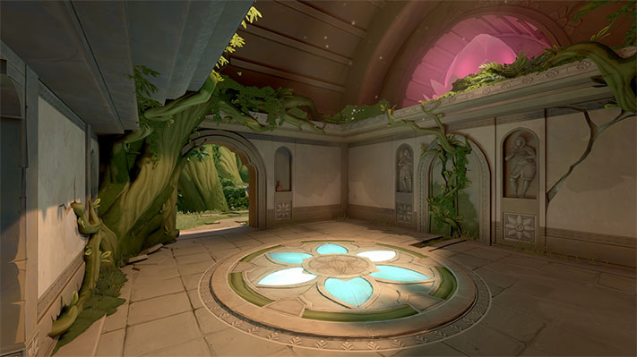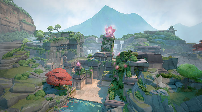 A l’instar de Haven, Lotus est une carte en 3 sites qui offre une grande flexibilité et un mouvement optimal pour les deux équipes. Les développeurs – souhaitant repousser les limites des éléments fantastiques et mystiques – se sont inspirés de plusieurs éléments architecturaux et lieux traditionnels indiens comme les puits à escalier, l’architecture en pierre de taille et le style dravidien. Les joueurs pourront notamment reconnaître des références aux temples troglodytes de Badami, les grottes d’Ellora et le Rani Ki Vav.