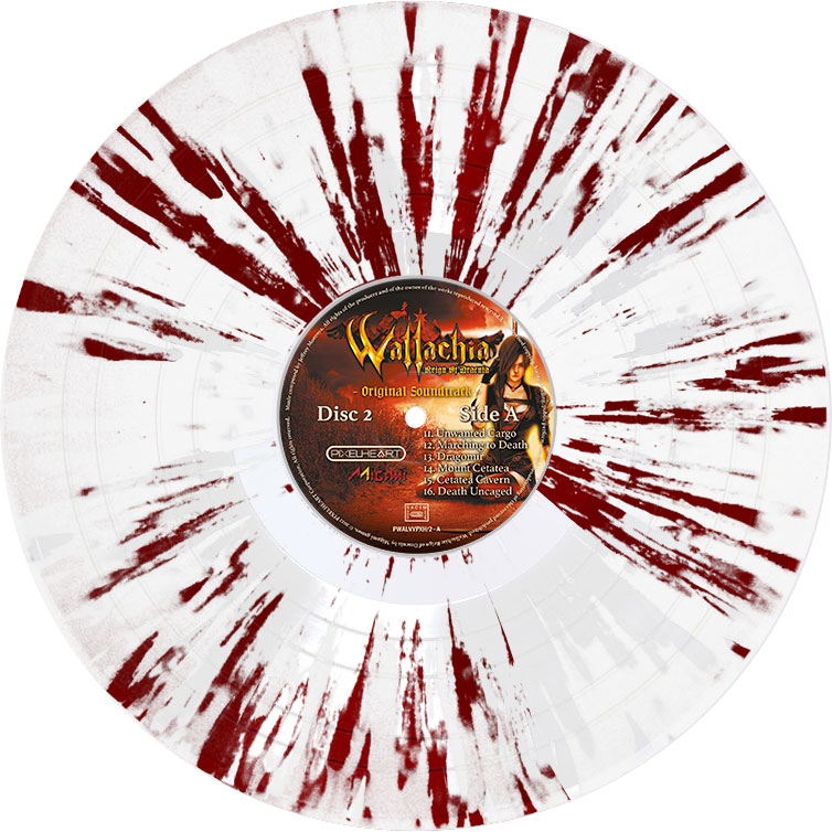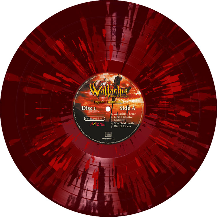 Hommage aux jeux d’action / plateforme de l’ère 16 bit, Wallachia: Reign of Dracula est développé par le studio indépendant Migami, et édité par PixelHeart. Just For Games a eu le plaisir de co-éditer et distribuer des versions physiques sur Nintendo Switch et Playstation 4 de ce jeu de chasse aux vampires. Sa bande-son entraînante et reprenant le style distinctif des jeux de cette époque est aujourd’hui mise à l’honneur avec un pressage inédit au format double vinyle couleurs rouge et blanc, aux superbes effets splatter rouge sang.