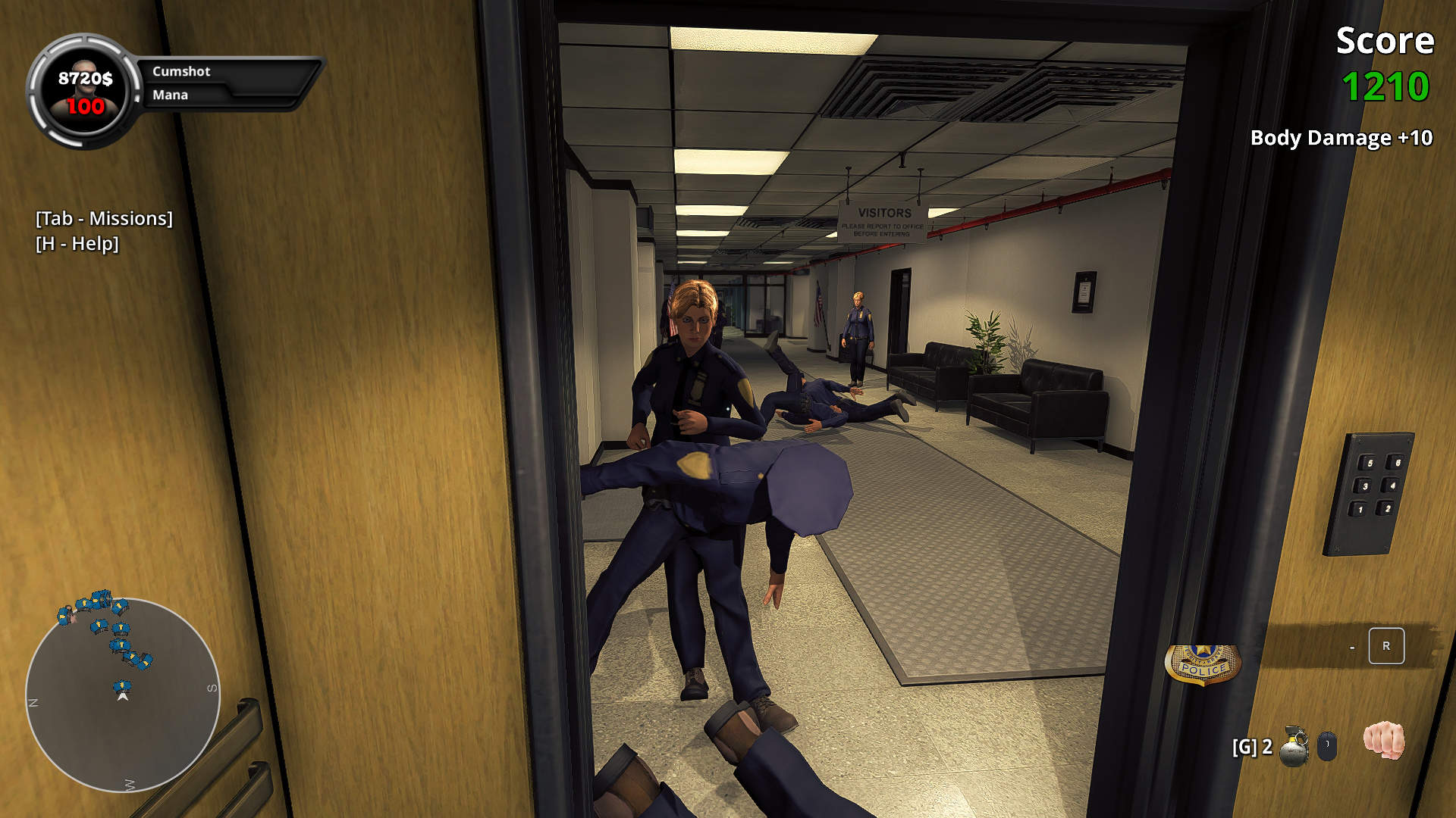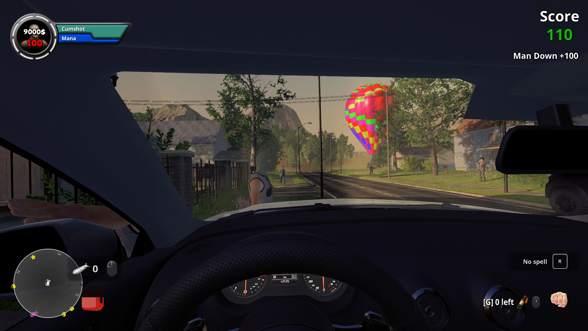 Ce simulateur 3D ne vous limite pas à propager un «chaos de masturbation» – le gameplay implique également, entre autres, des combats de mêlée, des tirs, la conduite d’une voiture, le vol d’un ballon, l’utilisation d’objets (y compris des grenades, des pierres, des cigarettes et une pelle) et lancer des sorts spéciaux.