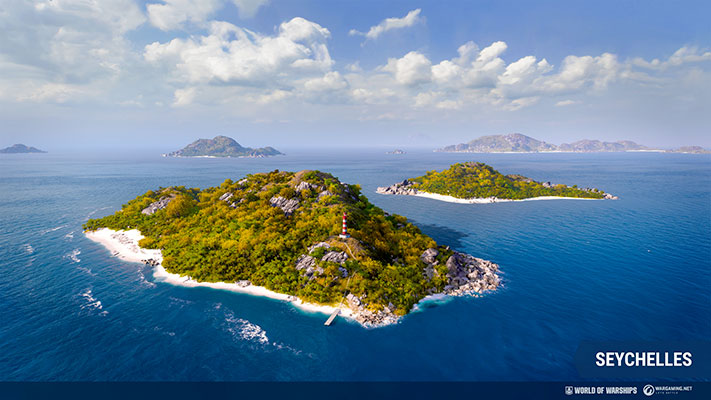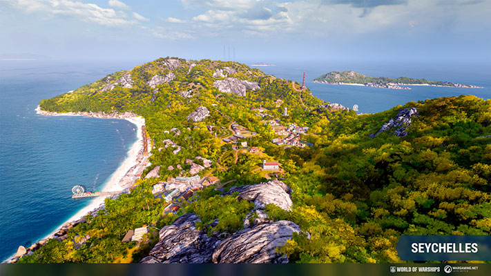 L’horizon de World of Warships s’élargit : une nouvelle carte qui recrée les îles tropicales des Seychelles a été introduite dans la mise à jour 12.3. Cette nouvelle carte, avec des paysages verdoyants qui s’inspirent grandement des îles montagneuses de Praslin et La Digue, sera disponible en Batailles aléatoires et en coopération. Les navires de rangs V à IX peuvent participer dans le mode Domination avec quatre zones-clés, réparties sur la carte dans deux configurations possibles.