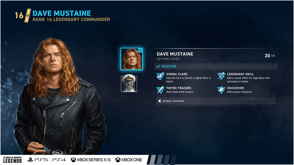 Le fruit (totalement gratuit !) de ce partenariat est le croiseur premium américain de rang IV Rattlehead, 2 uniformes de commandant représentant Dave Mustaine en personne et la mascotte du groupe Vic Rattlehead, un pavillon spécial ainsi qu’un arrière-plan et un symbole d’écusson. Ce contenu sera disponible jusqu’au 2 octobre via la boutique de votre plateforme (ou du jeu si vous êtes sur mobile), des missions et les réseaux sociaux de Legends.
