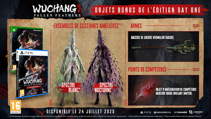 WUCHANG: Fallen Feathers – Day One Edition comprendra le jeu vidéo physique ainsi que des contenus bonus :