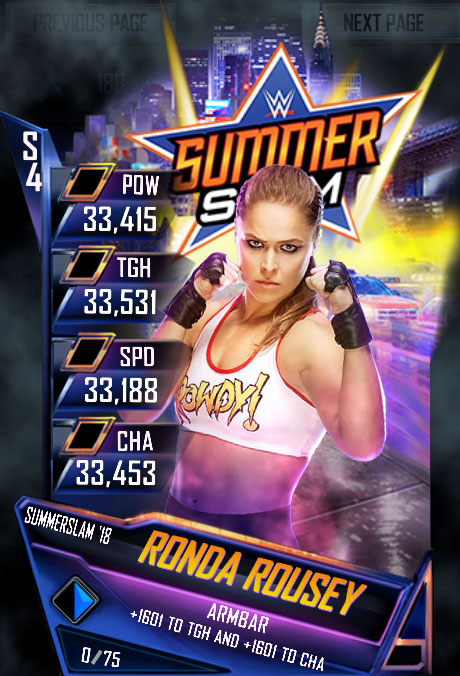 La Mise à jour 6 comprend plus de 70 Superstars de la WWE et Superstars de la NXT dont Stone Cold, Steve Austin et Samoa Joe. Les meilleures Superstars féminines comme Asuka et Charlotte font aussi partie du rang. Cette mise à jour marque aussi les débuts dans WWE SuperCard d’une Superstar anglaise de la NXT, Trent Seven. Et bien entendu, une nouvelle carte est disponible pour « The Baddest Woman on the Planet », Ronda Rousey.
