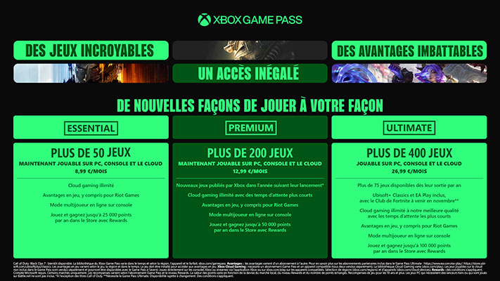 Avec les dernières améliorations évoquées ci-dessus, Xbox propose désormais la formule Ultimate à 26,99 € par mois, reflétant un catalogue enrichi, de nouveaux avantages partenaires et une expérience de cloud gaming optimisée. Les abonnés Standard seront automatiquement basculés vers la formule Premium, qui reste à 12,99 € par mois : une offre idéale pour les joueuses et joueurs recherchant flexibilité, accès à plus de 200 jeux et aux nouveaux titres Xbox Game Studios publiés dans l’année suivant leur lancement. Les abonnés Core seront quant à eux transférés vers la formule Essential, désormais à 8,99 € par mois, comprenant une bibliothèque variée de plus de 50 jeux, le multijoueur en ligne et le cloud gaming, pour jouer rapidement et facilement.