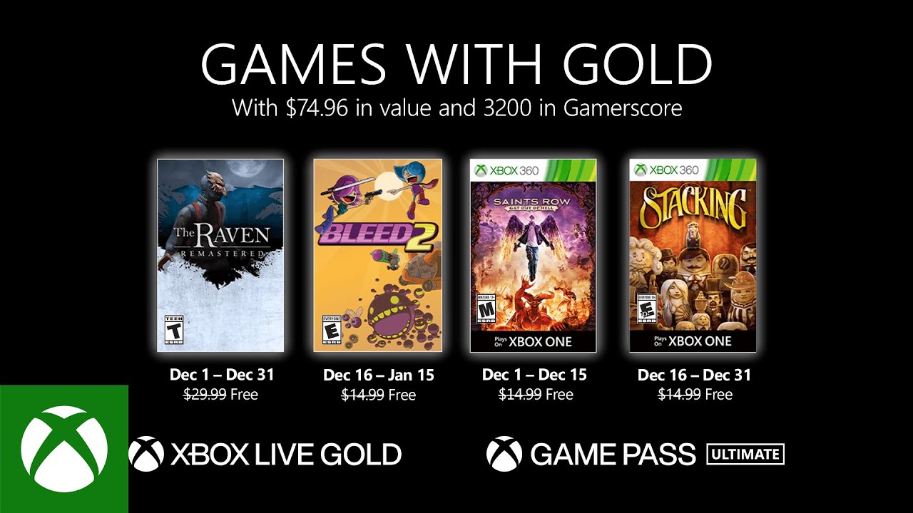Les membres Xbox Live Gold bénéficieront en exclusivité de ces jeux durant une durée limitée dans le cadre de Games with Gold. Avec le Xbox Live Gold, vous bénéficiez du service multijoueur le plus avancé, de jeux gratuits et de réductions exclusives aux membres sur les jeux du Microsoft Store. Obtenez le Xbox Live Gold dès aujourd’hui pour en profiter ou rejoignez le Xbox Game Pass Ultimate qui comprend tous les avantages du Xbox Live Gold ainsi que l’accès à plus de 100 jeux de grande qualité grâce au Xbox Game Pass.